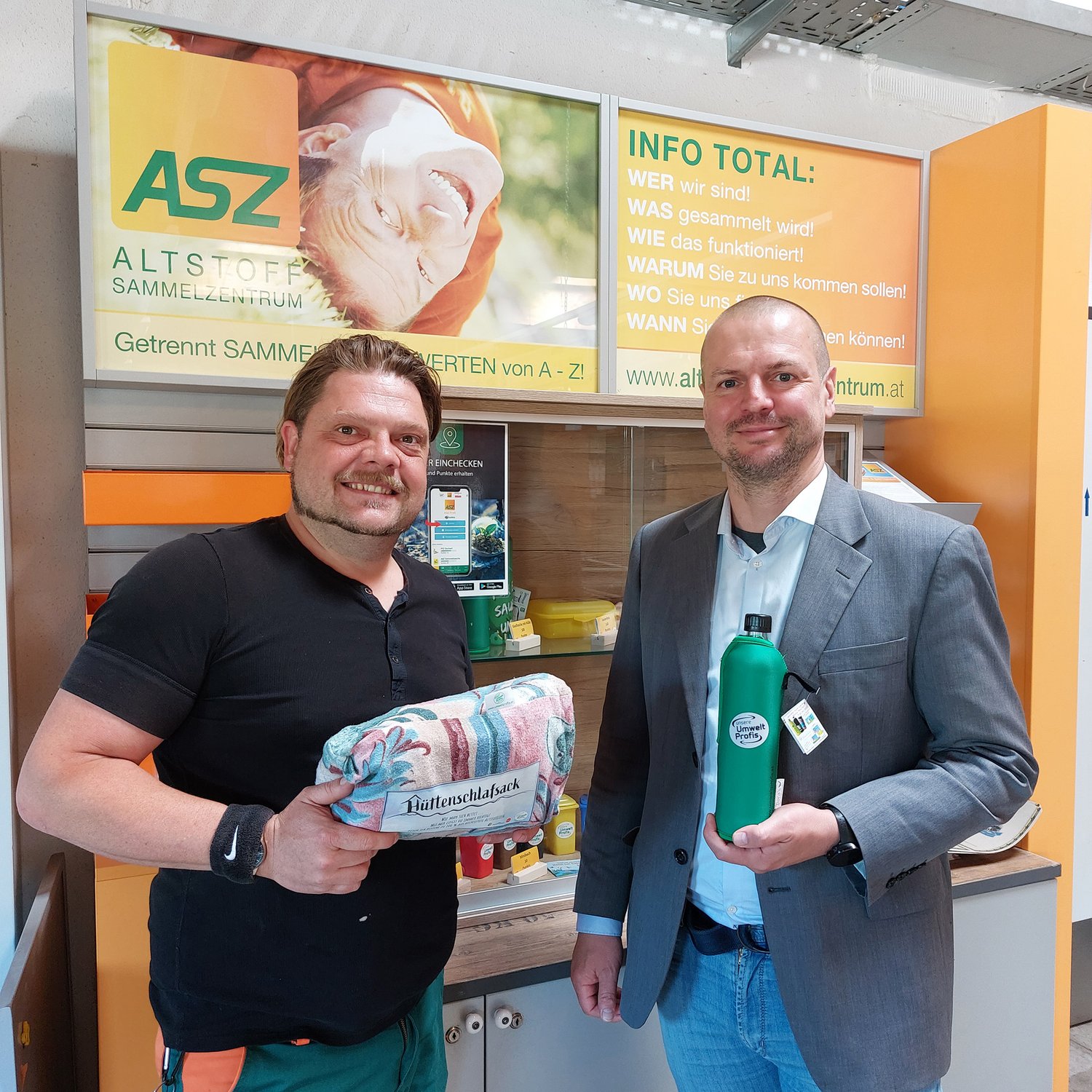 Machen Werbung fĂŒr die ASZ Profi App: Stadtrat Thomas Rammerstorfer und ASZ Wels-Nord-Leiter Thomas Schwarz.