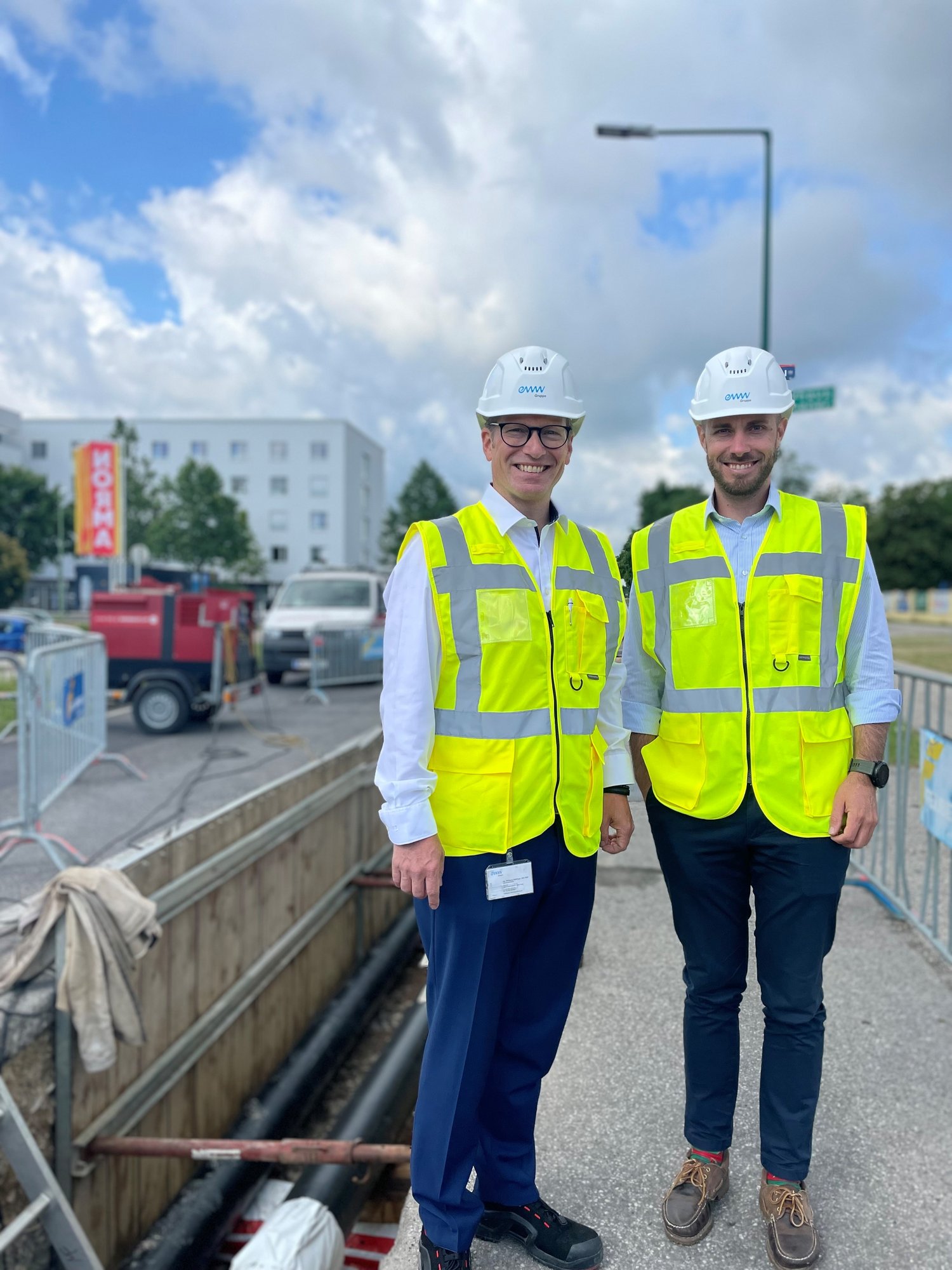 Im Bild (v.r.): Stadtrat Ralph SchÀfer, MSc. und Vorstand Ing. Wolfgang Nöstlinger, MSc. MBA (eww ag)
