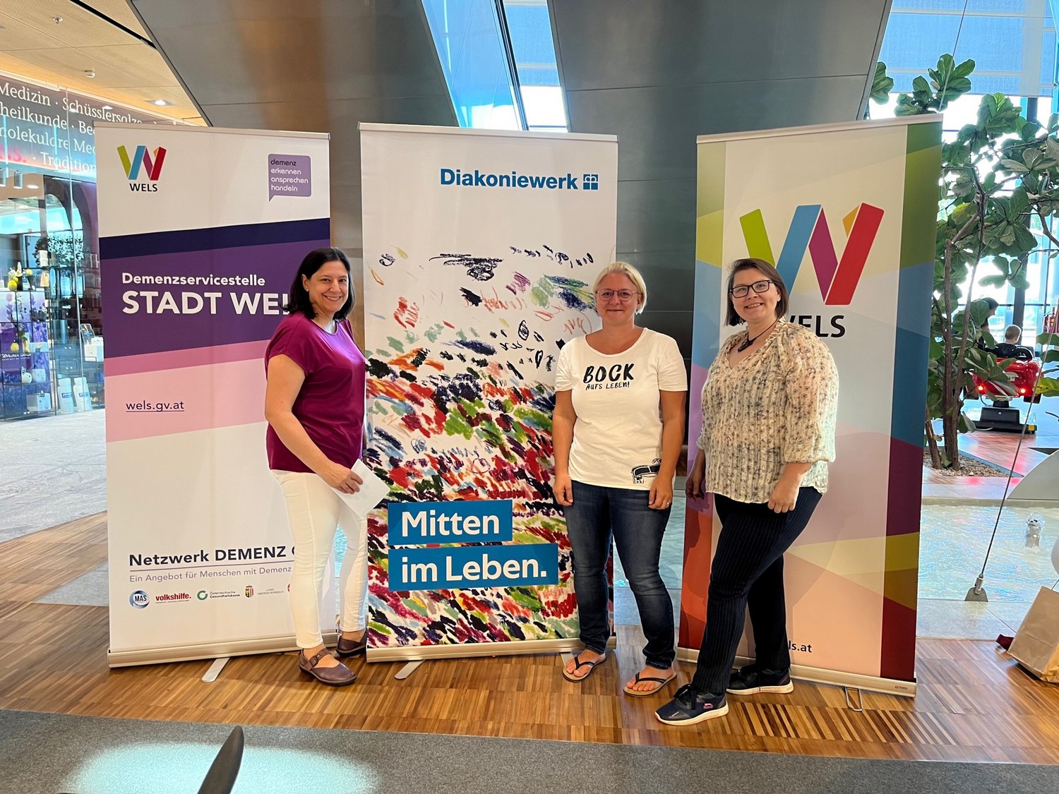 Anlässlich des Welt-Alzheimertages informierten Expertinnen der städtischen Seniorenbetreuung und des Diakoniewerks Oberösterreich im max.center über Angebote für Menschen im Alter, wie z.B. die Demenzservicestelle und die beiden Tagesbetreuungen. Drei Stationen ermöglichten es Interessierten, sich in die Welt mit Demenz hineinzufühlen. Auch Sozialreferentin Vizebürgermeisterin Christa Raggl-Mühlberger nahm die Angebote in Augenschein, da das Thema Demenz immer mehr Menschen betrifft und Aufmerksamkeit verdient.