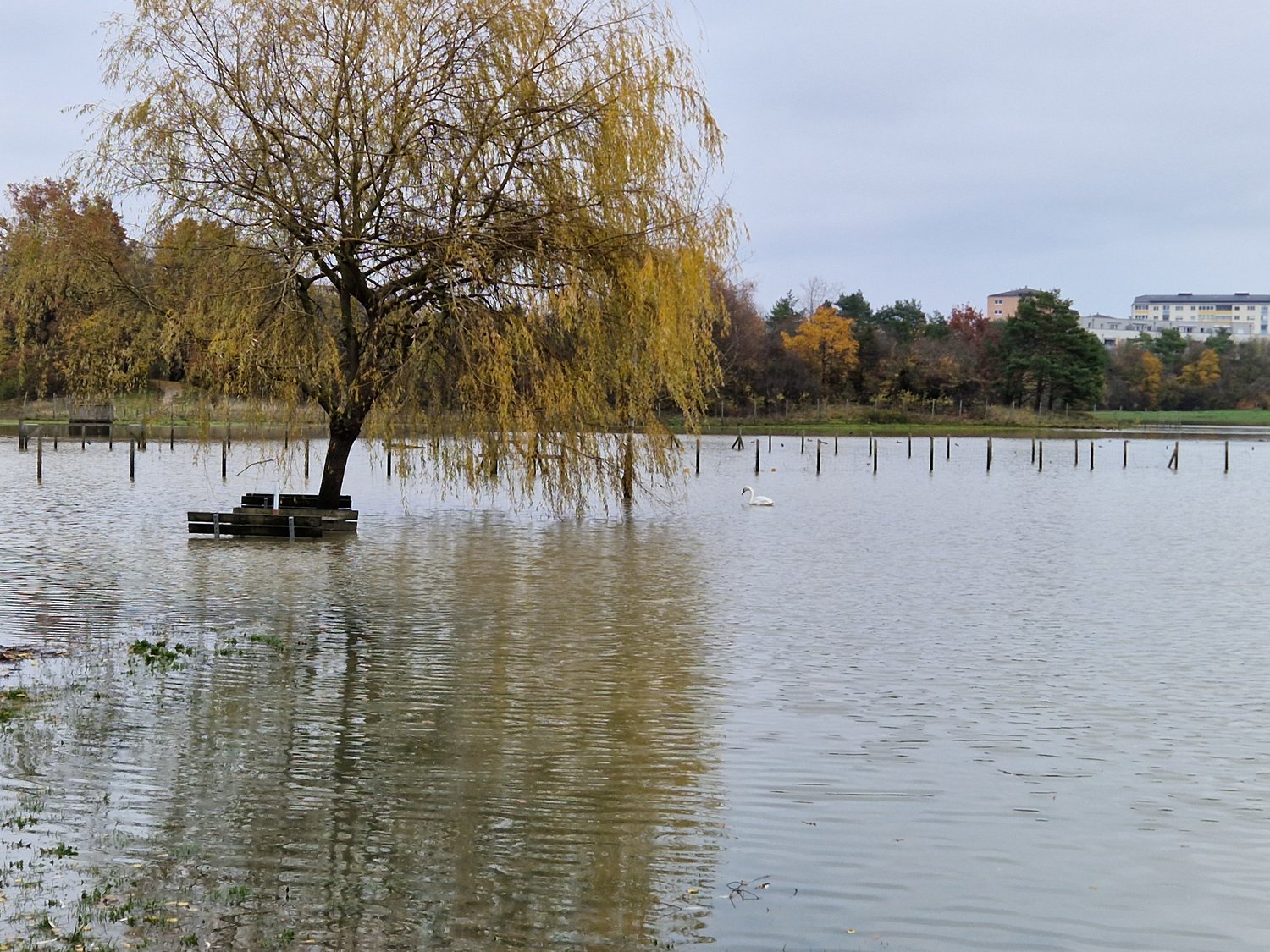 Wasservögel jedoch nehmen die vergröĂerte FlĂ€che sehr gut an, und die Besucher können bereits beim Parkplatz Enten und das berĂŒhmte Schwanenpaar sehen. Der Spielplatz und der Bereich der Dirt BMX-Bahn bleiben hingegen auch bei den HochwĂ€ssern verschont und können weiterhin genutzt werden.