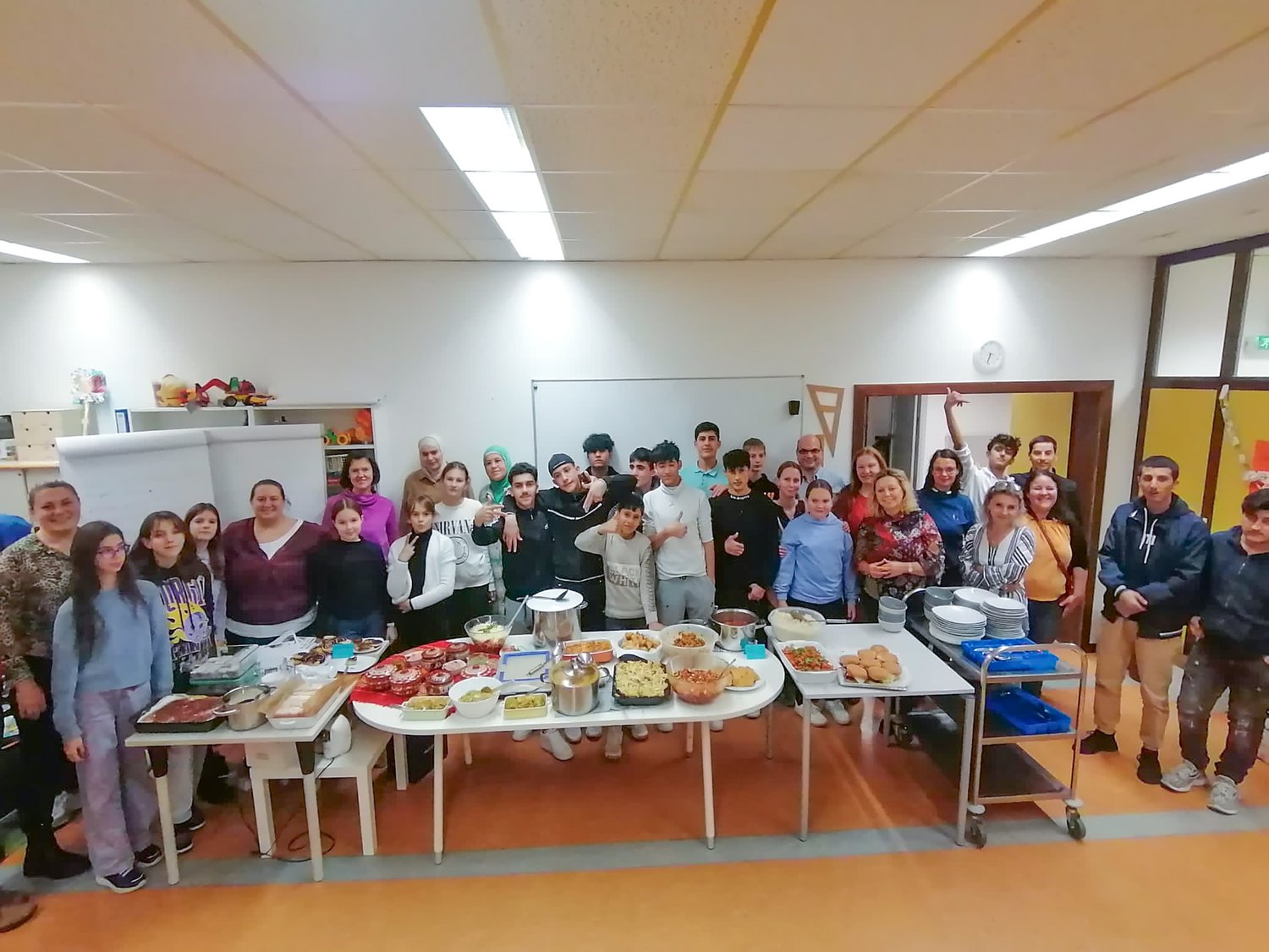 Das Quartier Gartenstadt (Otto-Loewi-Straße 2) war einmal mehr der Schauplatz für einen interkulturellen Kochabend. Organisiert und durchgeführt von Wohnen im Dialog Wels der Volkshilfe in Kooperation mit der Stadt Wels, entstand ein internationales Buffet unter anderem mit Gerichten aus Bosnien, der Türkei, Syrien, Ungarn, Bulgarien und Österreich. Durch die hohe Beliebtheit der Veranstaltung – mehr als 50 Frauen, Männer, Kinder und Jugendliche nahmen dieses Mal teil – wird der Platz in der Küche und in den Vorbereitungsräumen zwar teilweise knapp. Doch diese Flexibilität trägt dazu bei, dass alle näher zusammenrücken und ein Gefühl der Gemeinschaft entsteht. Besonderes Engagement zeigten zwölf unbegleitete minderjährige Asylsuchende aus der Wohngemeinschaft Smaragd (Bahnhofstraße 34), was Integrationsreferent Vizebürgermeister Gerhard Kroiß besonders freut.