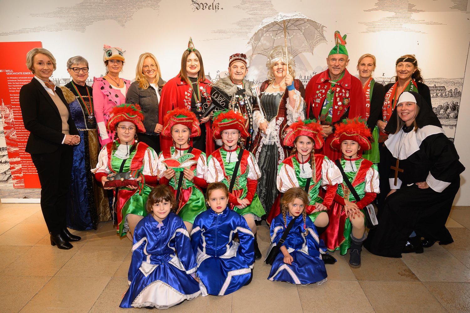 Zu den zahlreichen Medaillen der Welser Faschingsgesellschaft in der Dauerausstellung im Stadtmuseum Burg (Burggasse 13) gesellten sich kürzlich zwei weitere: Eine Abordnung des Faschingsvereines Schelmenrat zu Wels übergab samt Garde seinen Hausorden und den Orden der Landesnarrenhauptstadt 2022/2023 feierlich dem Museum. Darüber freute sich neben Vizebürgermeisterin Christa Raggl-Mühlberger (sie vertrat Bürgermeister Dr. Andreas Rabl) auch der zuständige Referent Stadtrat Dr. Martin Oberndorfer, der beim Foto aufgrund einer Terminkollision leider verhindert war. Nähere Infos zum Angebot der Stadtmuseen unter wels.at/stadtmuseum im Internet.