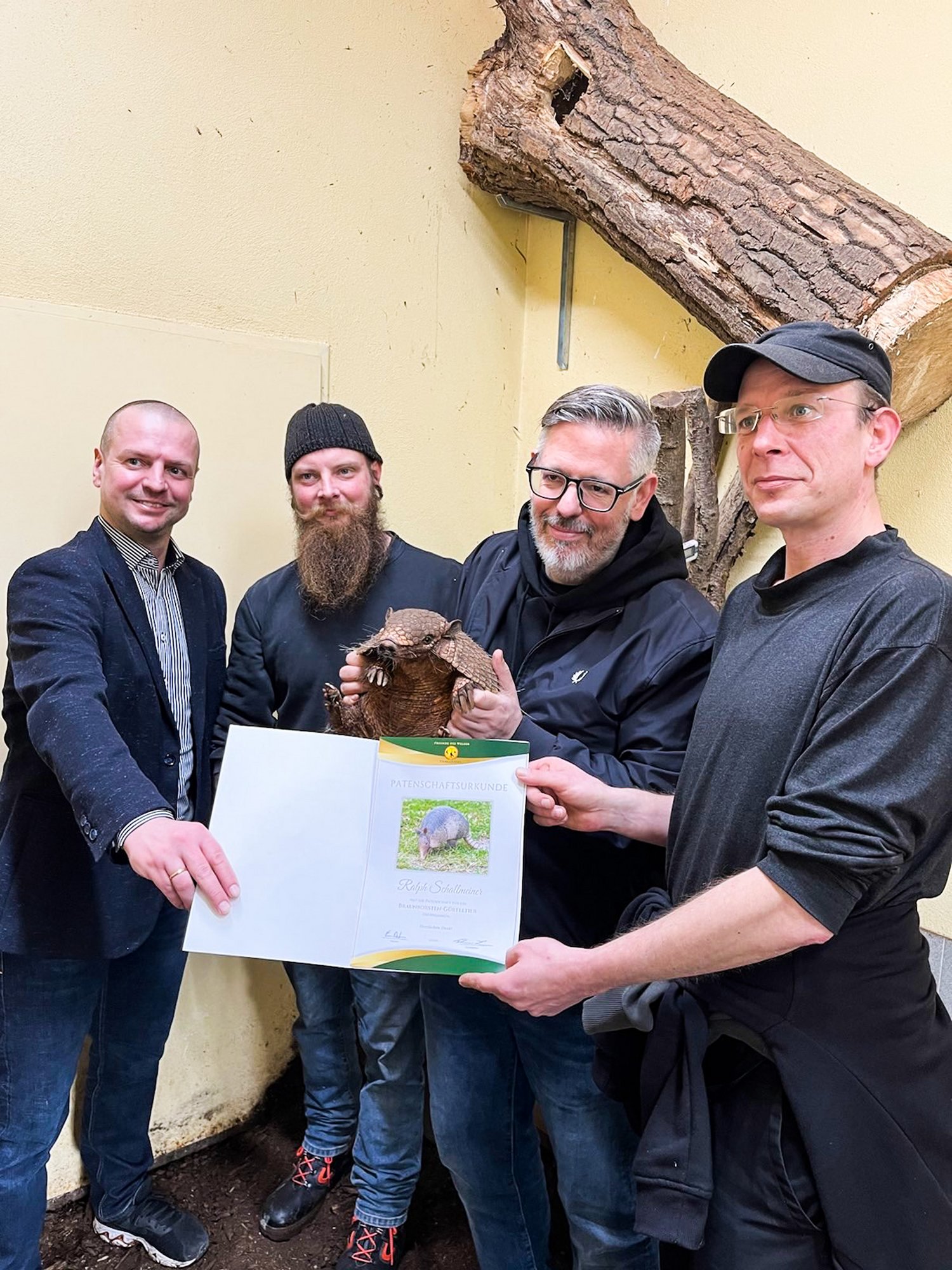 Mehrfacher Tierpate im Welser Tiergarten ist nun der Vizebürgermeister und Nationalratsabgeordnete Ralph Schallmeiner aus der Welser Nachbar-Marktgemeinde Thalheim: Nach den Zwergseidenäffchen hat er nun auch die Patenschaft für die Borstengürteltiere übernommen. Darüber freuten sich Tiergarten-Referent Stadtrat Thomas Rammerstorfer, Obertierpfleger Dominic Weber und Mag. Frowin Decker als Obmann des Vereins Freunde des Welser Tiergartens. Bei diesem sind auch alle richtig, die an einer Tierpatenschaft interessiert sind. Kontaktdaten: E-Mail info@tiergartenfreunde.at oder www.tiergartenfreunde.at im Internet. Allgemeine Infos sind unter wels.at/tiergarten ersichtlich, ebendort unter „Aktuelles“ die laufende Neuausschreibung der selbstständigen Organisation, Bewerbung und Durchführung des zoopädagogischen Jahresprogramms.