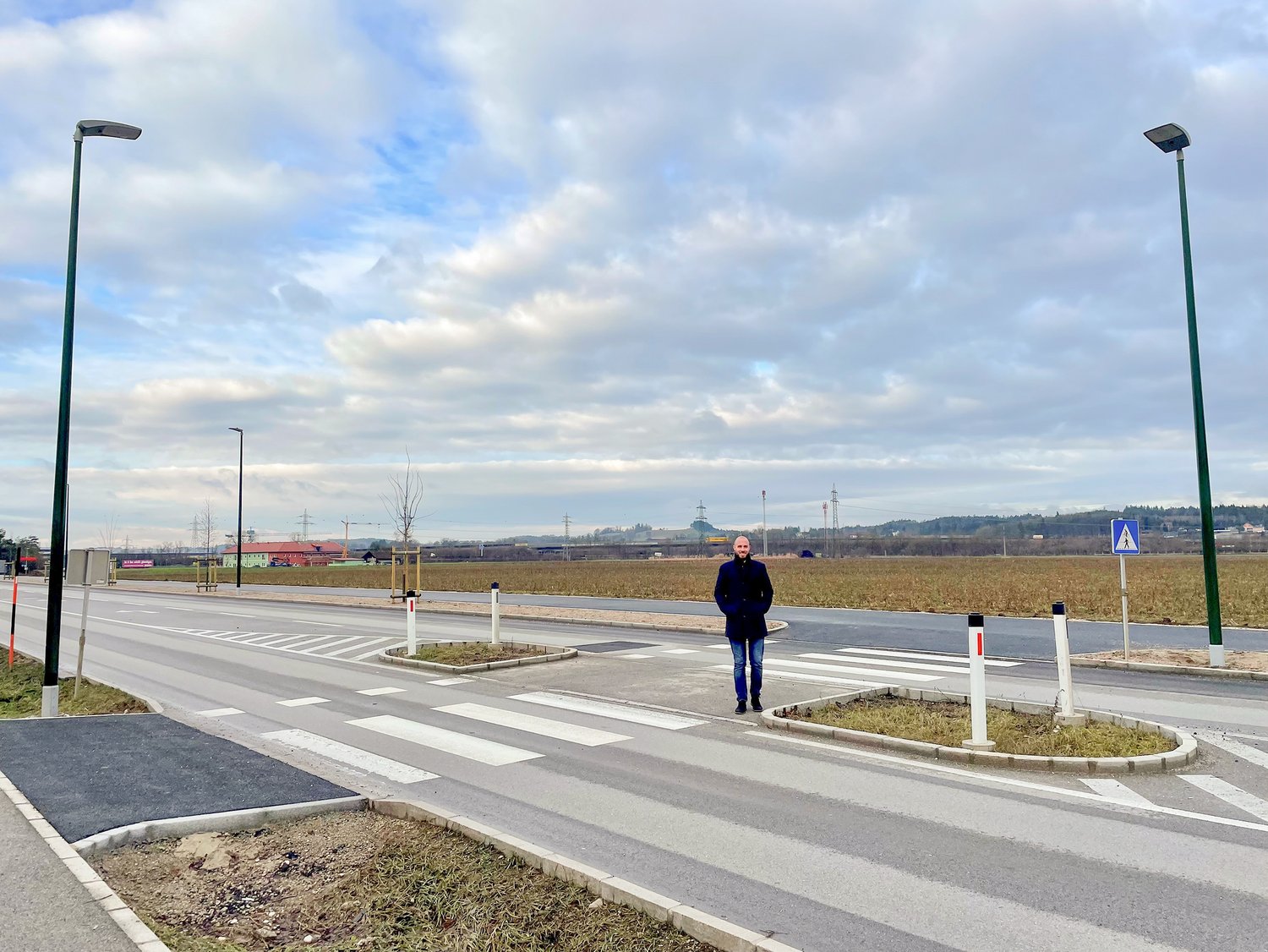 Auch bei schlechten Sichtverhältnissen und bei Dunkelheit ist auf dem neuen Radweg in der Oberfeldstraße sicheres Radfahren dank der ebenfalls neu installierten LED-Beleuchtung möglich. Die zwölf Masten leuchten den Radweg, die Radfahrerüberfahrt und den Schutzweg (im Bild Beleuchtungsreferent Stadtrat Ralph Schäfer, MSc) mit einer Leistung von jeweils 40 Watt normgerecht aus. Zur Vermeidung von Lichtverschmutzung erfolgt eine Nachtabsenkung von 50 Prozent.
