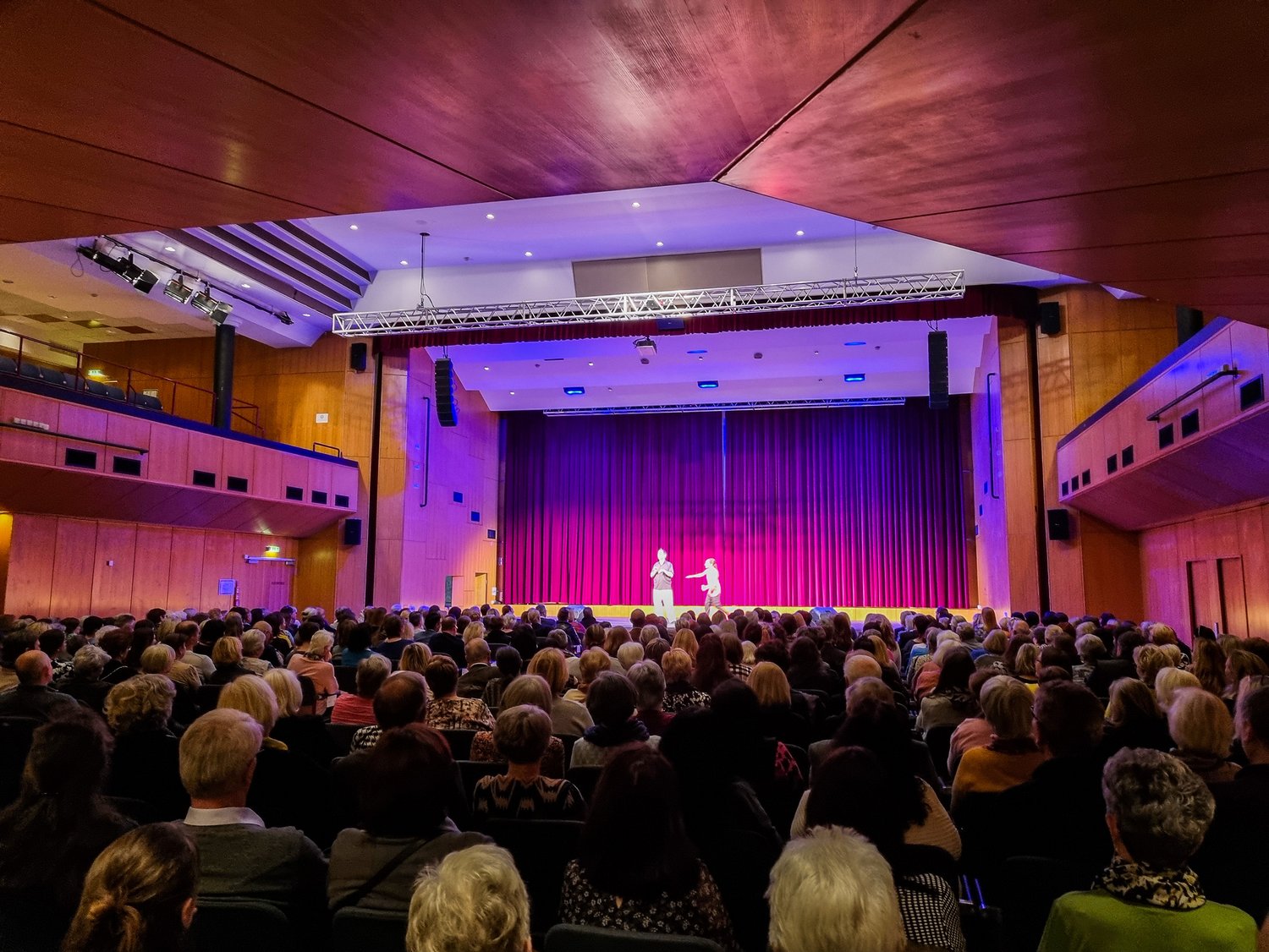 Beim Kabarettabend mit Caroline Athanasiadis und Erich Furrer war die Stadthalle mit rund 460 GĂ€sten restlos ausgebucht. Das griechisch-österreichisch-schweizerische Duo sorgte mit âJulia & Romeoâ fĂŒr einen amĂŒsanten Abend beim Publikum. Es wurde viel gelacht, geschmunzelt und gestaunt ĂŒber die Neuinterpretation der Shakespeare-Klassikers unter der Regie von Gabriela Benesch. Die âlustigste Tragödie der Weltâ wird den GĂ€sten auf jeden Fall noch lange in Erinnerung bleiben.