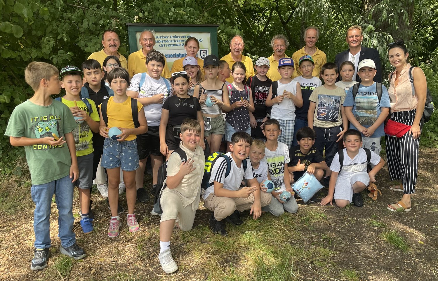 Am Tag der offenen BienenhĂŒtte haben kĂŒrzlich rund 300 SchĂŒler den Welser Bienenlehrpfad besucht. Organisiert und betreut wurde dieser Aktionstag vom Welser Imkerverein. Auch Bildungsreferent VizebĂŒrgermeister Mag. Klaus Schinninger besuchte die Veranstaltung und begrĂŒĂte dabei SchĂŒler der Volksschule 9 Vogelweide (Bild).