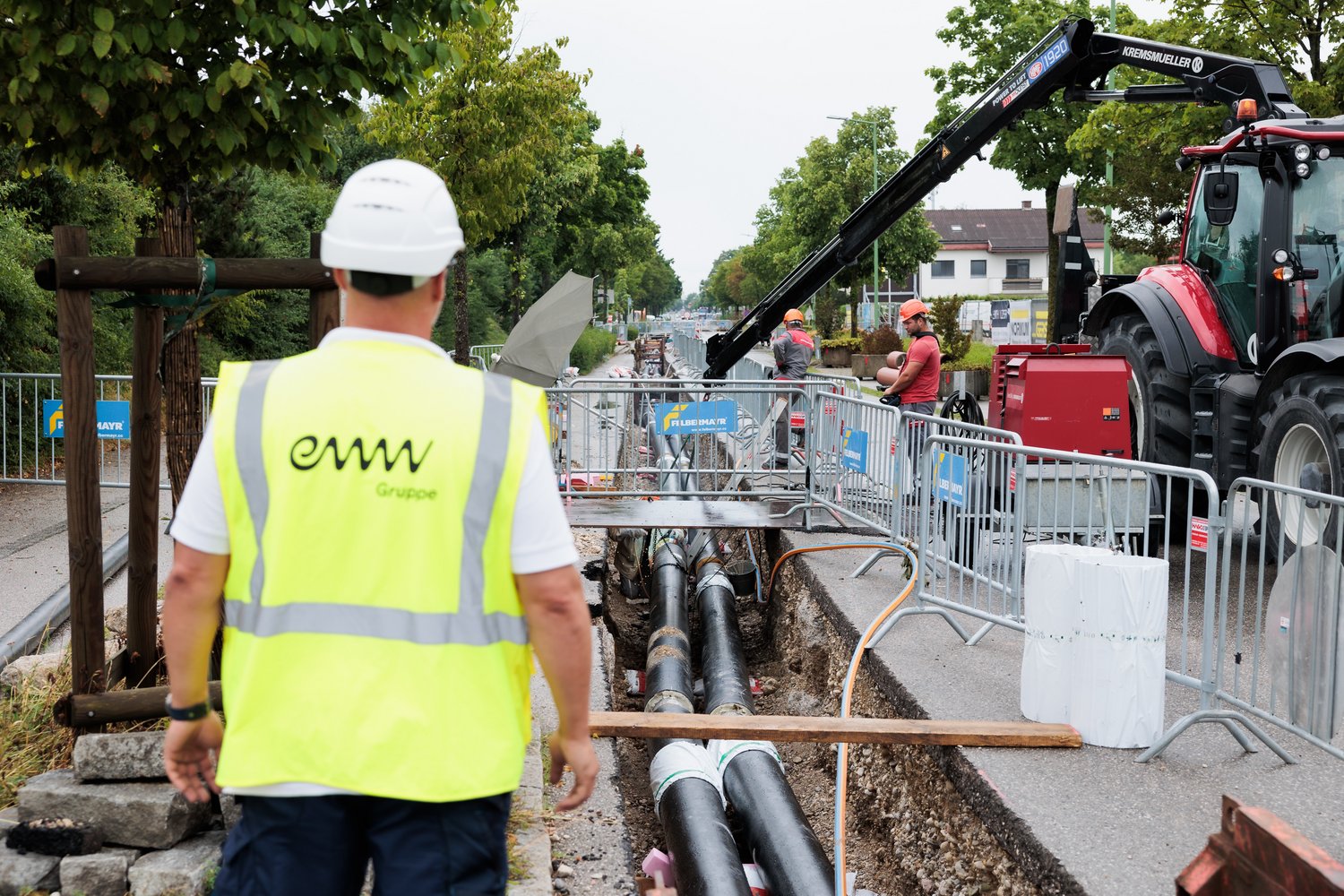 eww plant alle Netze und Baustellen –Strom, Wärme, Gas, Wasser und Abwasser – in einem Bereich und ist so auch bei der Umsetzung der Bauvorhaben sehr effizient. Wenn zum Beispiel eine Straße für die Fernwärme geöffnet wird, werden auch die anderen Netze kontrolliert beziehungsweise modernisiert und so der Aufwand beziehungsweise die Baustellen reduziert. 2024 werden 15.000 Laufmeter Hauptleitungen verlegt, 390 Häuser angeschlossen, die Arbeiten kommen rund 2.000 Einwohnern zugute. Die Bausaison läuft beinahe ganzjährig von Montag, 22. Jänner bis Donnerstag, 19. Dezember, gearbeitet wird jeweils Montag bis Freitag von 07:00 bis 17:00 Uhr. Die Herstellungskosten liegen bei 39,35 Mio. Euro.