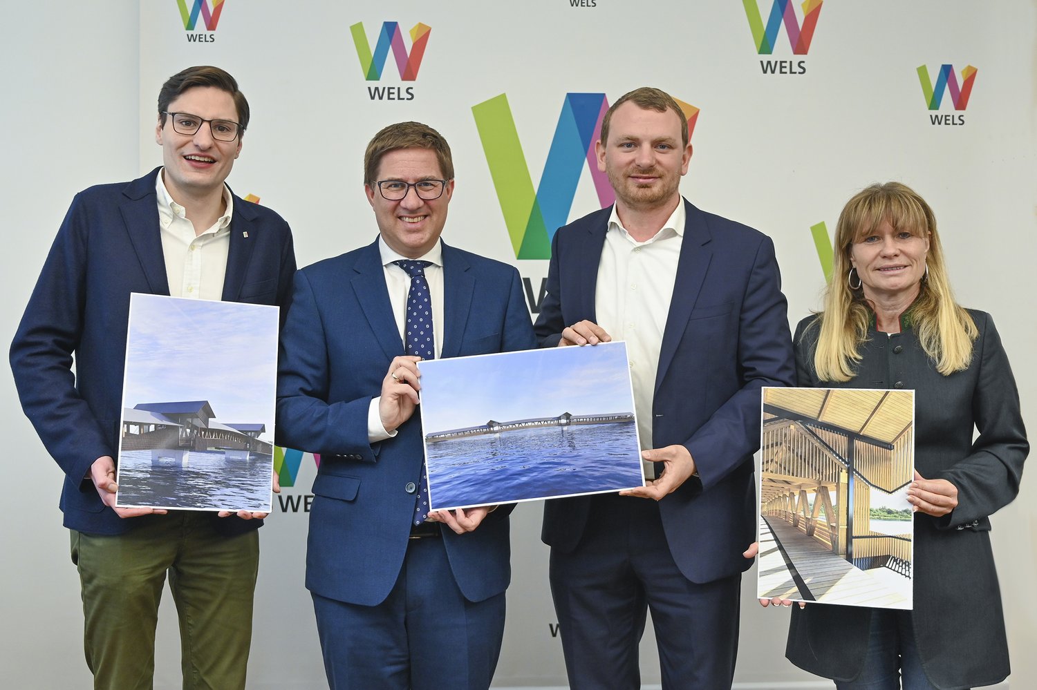 Bildhinweise: Schimetta Consult ZT GmbH (Visualisierungen) beziehungsweise Stadt Wels (Gruppenfoto). Bei Nennung Abdruck jeweils honorarfrei.