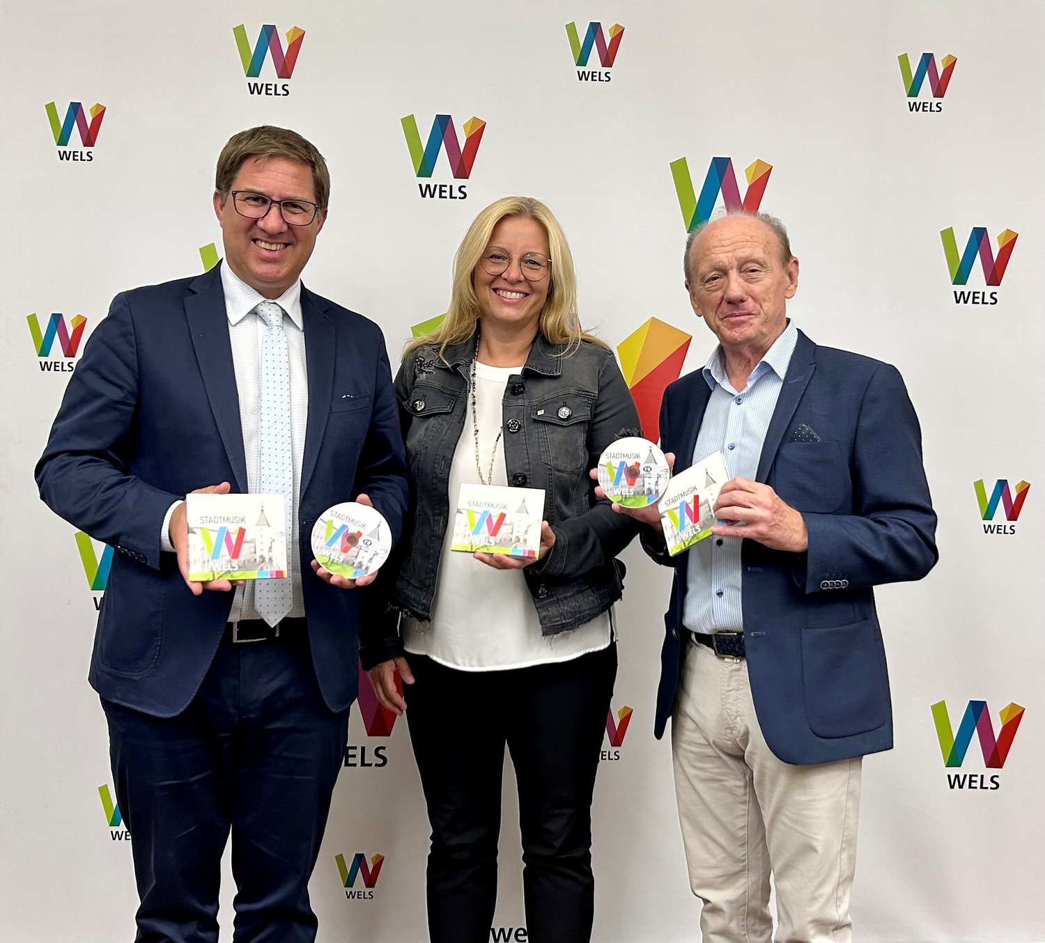 Zum JubilĂ€um â130 Jahre Stadtmusik Welsâ prĂ€sentieren BĂŒrgermeister Dr. Andreas Rabl, Kulturreferentin VizebĂŒrgermeisterin Christa Raggl-MĂŒhlberger und Kapellmeister Landesmusikdirektor a.D. Kons. Prof. Walter Rescheneder (alle im Bild v.l.) eine neue CD. Vom âJubilĂ€umsmarschâ bis zu Melodien aus âMy fair Ladyâ ist eine Auswahl von gehobener Konzert- und Unterhaltungsmusik zu hören. Wer dieses JubilĂ€umsgeschenk kostenlos haben möchte, kann sich per SMS oder WhatsApp an Tel. +43 664 829 82 10 wenden. Die Stadt Wels ist mit der 1893 gegrĂŒndeten Stadtmusik (ehemals Magistratsmusik) sehr eng verbunden: Der amtierende BĂŒrgermeister bekleidet stets die PrĂ€sidentenstelle. FĂŒr Kapellmeister Rescheneder steht heuer ĂŒbrigens ebenfalls ein JubilĂ€um an: Er hat diese Funktion seit genau 55 Jahren inne. NĂ€here Infos unter www.stadtmusik-wels.at im Internet.