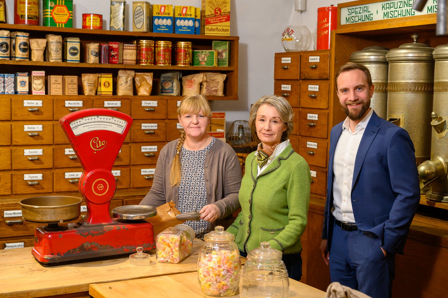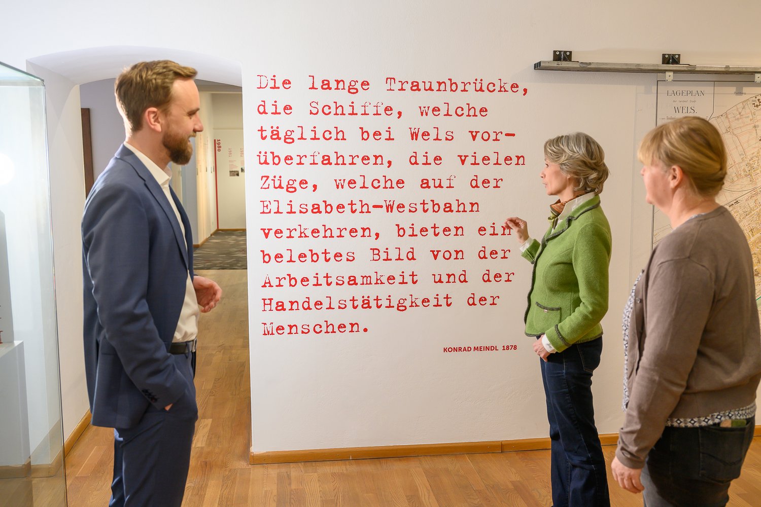 Stadtrat Dr. Martin Oberndorfer unterwegs im Stadtmuseum Burg mit Mag. Ingeborg Micko und Mag. Michaela Greisinger.