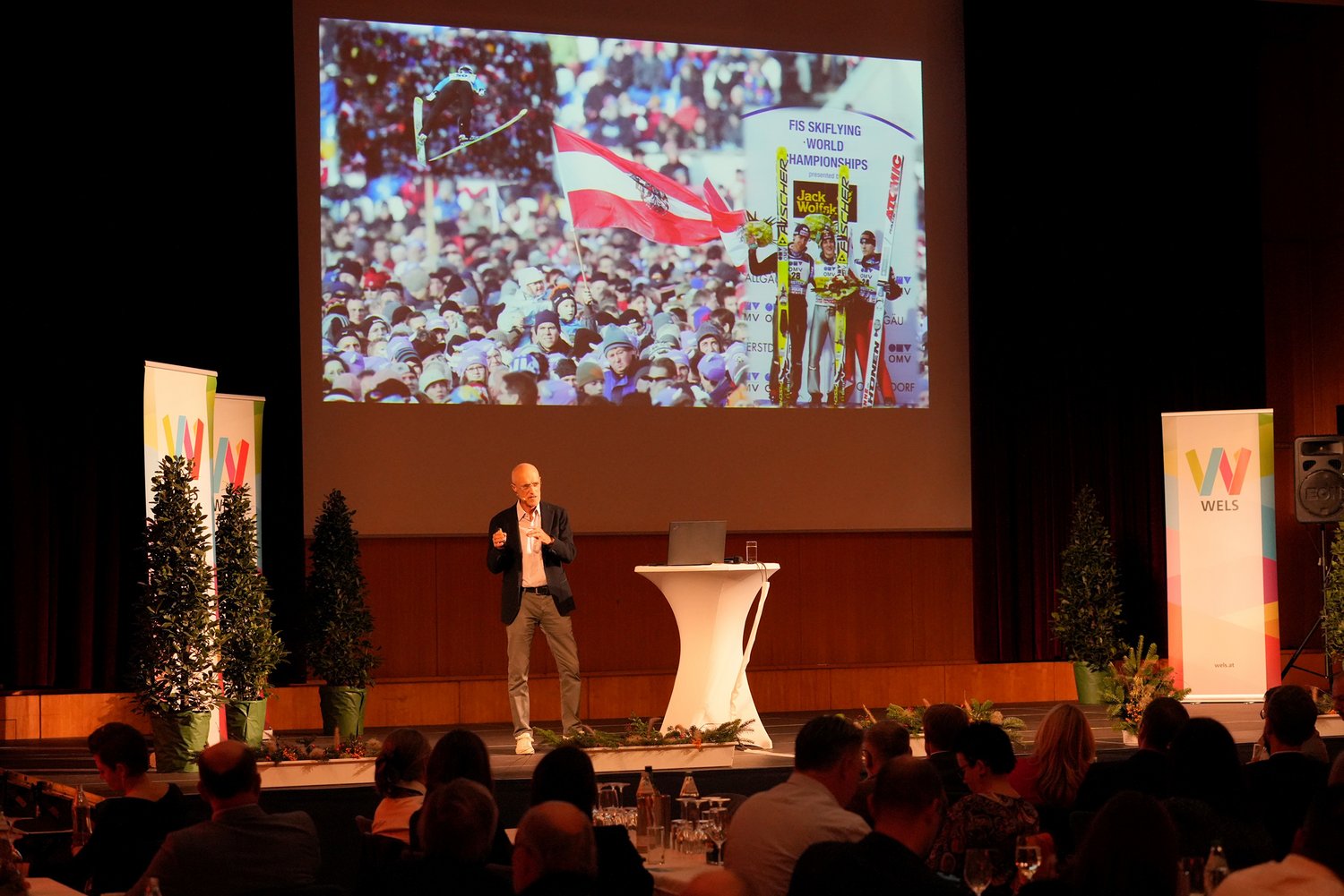 Ehrengast Toni Innauer sprach passend zum Abend über die „Bedeutung von Verein und Ehrenamt in der Gesellschaft“. „Gemeinsam etwas schaffen, Begeisterung teilen, sich nützlich machen, Sinn finden, Persönlichkeit entwickeln“: Diese Schlagworte fassen den mit zahlreichen Anekdoten und Beispielen aus seinem bewegten Sportler-, Trainer- und Unternehmerleben untermalten Vortrag am besten zusammen. Nähere Infos zum Referenten unter www.toni-innauer.at im Internet.